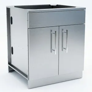 The Sink Base Cabinets by Sunstone offers the most Versatile cabinet selection. All cabinets can accommodate various sizes of Sinks, Ice Chests or any other insertable Counter Appliance. Additionally they offer an excellent storage solution, especially the Combo Units which include a full width drawer, which is removable to replace a false panel for sink installation. Sink installation love the fact that the interior shelves can stay in place, with the built-in cut-out which unfastens so that you can accommodate the sinks plumbing through the shelving and out the utility access at the base of the cabinet.