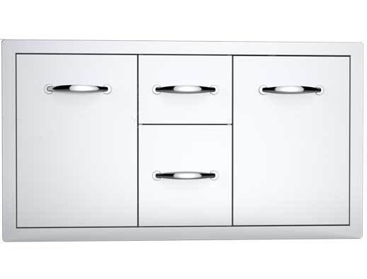 The Sunstone® Classic Series Flush Style 42 In. Multi-Storage Combo has absolutely everything needed for your outdoor kitchen, featuring one of the largest all in one solution with two spacious center drawers, on the Right Sides well as a roll out drawer for storing a trash bin. On the Right Side see the Full Height Drawer with roll-along drawer base, perfect for either a Portable Propane Bin, or Trash Bin – even has an adjustable Trash-Bag Ring for a no-fuss Loose Trash Bag. On the Left features a Multi-Leveled Full-Height Drawer with interior stationary shelf for “Sterno Canisters” and above that a Perforated Holed Deep Drawer, perfect for warming your Hamburger Buns and keeping your freshly grilled food fresh. All drawer tracks feature High-End 'Soft-Closing' Tracks, and finishing this with beautiful Chrome Polished Handles.